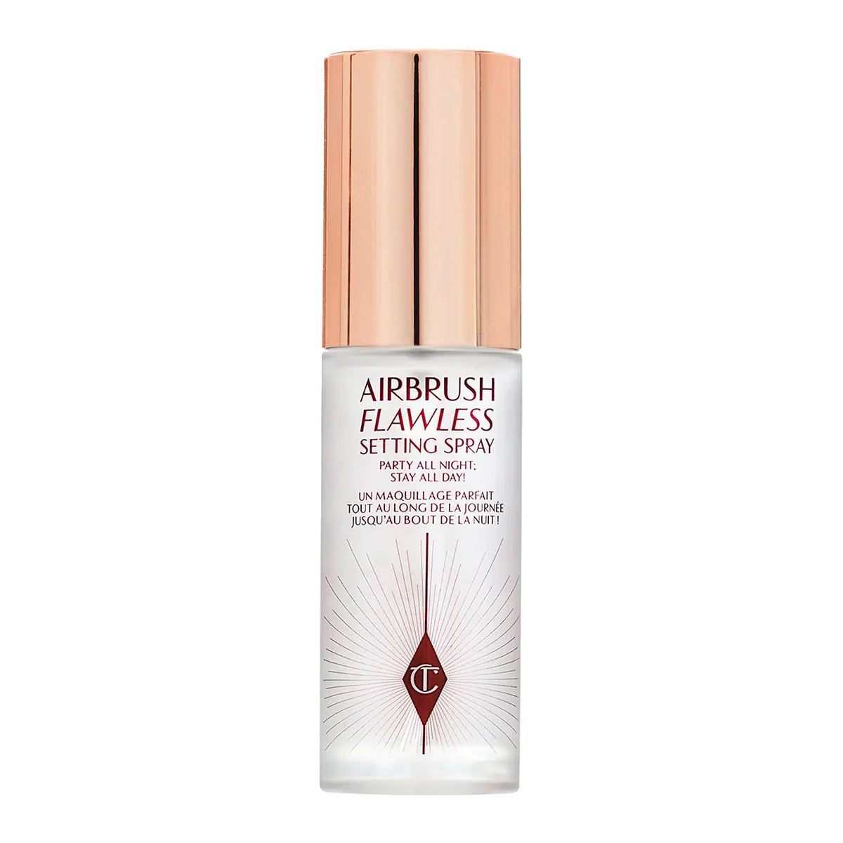 El fijador Charlotte Tilbury Airbrush Flawless Setting Spray es un fijador hidratante y resistente al agua, perfecto para retoques en cualquier lugar. Enriquecido con té verde japonés y aloe vera, prepara y fija el maquillaje hasta por 16 horas, evitando que se derrita, se desvanezca y se arrugue, a la vez que mantiene tu look fresco día y noche.