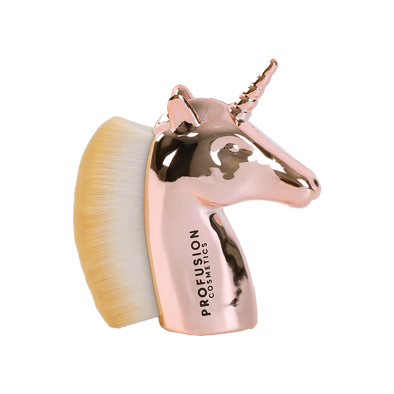 - ¡Agrega un poco de magia a tu colección de maquillaje! Esta brocha para el rostro de unicornio en oro rosado reflectante es perfecta para difuminar la base o pulir el bronceador. Sea lo que sea, las cerdas libres de crueldad animal facilitan la aplicación de fórmulas tanto líquidas como en polvo.